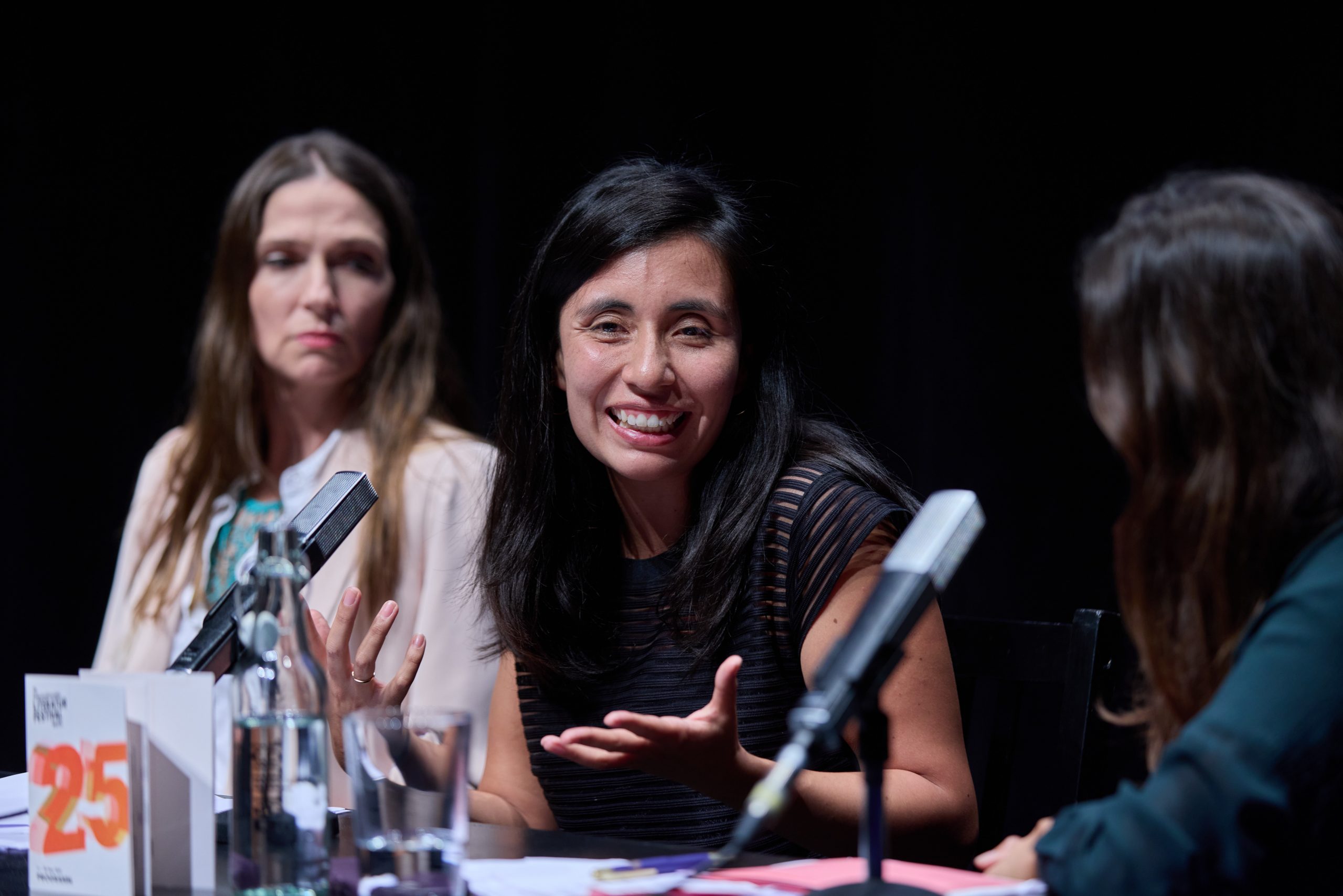 Im Mittelpunkt der spanischsprachigen Veranstaltung standen die Schriftstellerinnen Eliana Hernández-Pachón, Luisa Reyes Retana und Gabriela Wiener. Drei Frauen aus Lateinamerika, die in ihren literarischen Werken nicht nur geografische und sprachliche Grenzen überschreiten, sondern auch die zwischen Mensch und Natur, Körper und Raum und Vergangenheit und Zukunft. An diesem Abend einte sie ein gemeinsames Anliegen: Erzählungen zu durchbrechen, die vom Patriarchat, Kolonialismus und Kapitalismus geschrieben wurden und jenen Gehör zu verschaffen, deren Stimmen allzu oft im Schatten bleiben – seien es Frauen, Migrant*innen oder Pflanzen.
