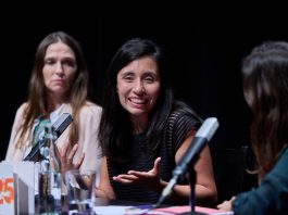 Ein schmaler, dunkler Raum, gefüllt mit aufgestellten Stuhlreihen – schätzungsweise 150 Plätze. Ganz vorne ist die Bühne mit nur einem Tisch und vier Stühlen gedeckt. Der Saal ist knapp zur Hälfte gefüllt. Rauschen und Geflüster ist nicht zu hören. Die Anspannung ist deutlich wahrzunehmen. Lediglich die Stimmen der Mitarbeiter*innen erfüllen den Raum: „Können Sie bitte in den Reihen aufrücken, damit alle Gäste reinpassen? Die Veranstaltung ist ausgebucht!“